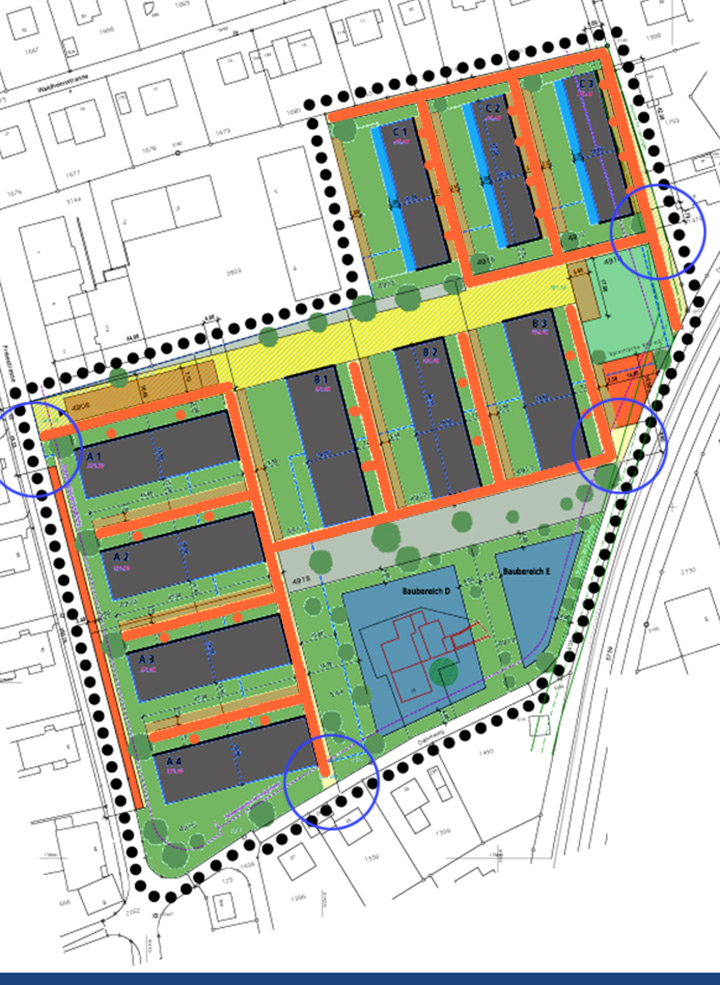 Als integratives Element fungiert die Gebäudesignalisation. Systematisch zeigt sich in jedem Hauseingang der Siedlung der Informationsträger und individualisiert diesen. Das System erfüllt wichtige Kommunikationsaufgaben und hilft dem Benutzer seine „mental map” zu konfigurieren.