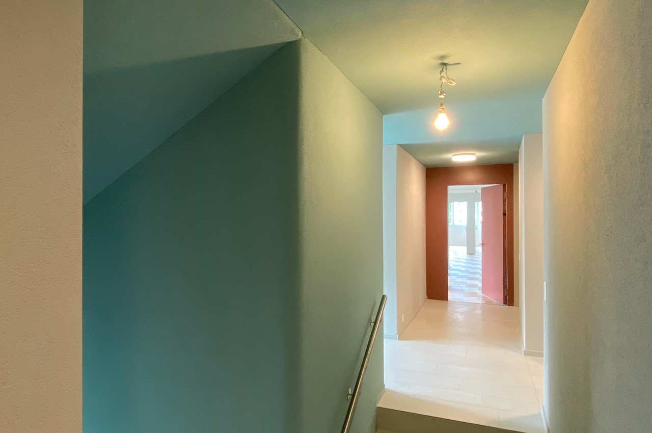 Durch eine einerseits klare, die Fassadenstruktur abbildende Farbgebung, andererseits durch eine subtile Differenzierung der farbtragenden Elemente in der Tiefe, ist eine Preziose entstanden, die den Krienser Stadtraum farbathmosphärisch anzureichern vermag.